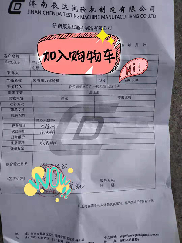 濟(jì)南辰達(dá)專(zhuān)注試驗(yàn)機(jī)研發(fā)生產(chǎn)十余年時(shí)間,主要有各種材料試驗(yàn)機(jī),液壓萬(wàn)能試驗(yàn)機(jī),電子萬(wàn)能試驗(yàn)機(jī),摩擦磨損試驗(yàn)機(jī),壓力試驗(yàn)機(jī),拉力試驗(yàn)機(jī),扭轉(zhuǎn)試驗(yàn)機(jī)等,歡迎新老客戶(hù)到廠考察選購(gòu)!圖為河北某公司巖石壓力試驗(yàn)機(jī)就位安裝調(diào)試成功!